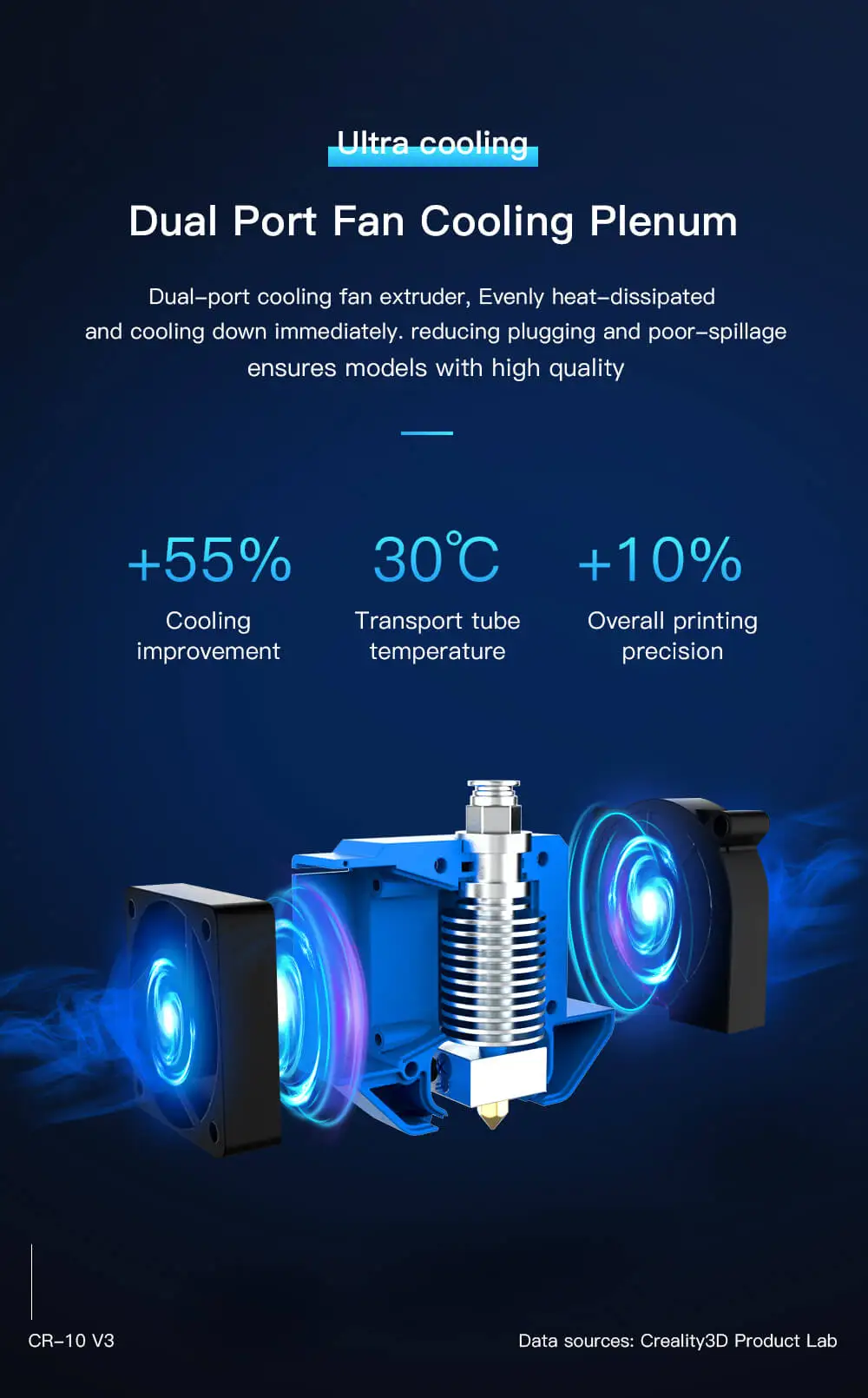 Dual-port cooling fan extruder, Evenly heat- dissipated and cooling down immediately. reducing plugging