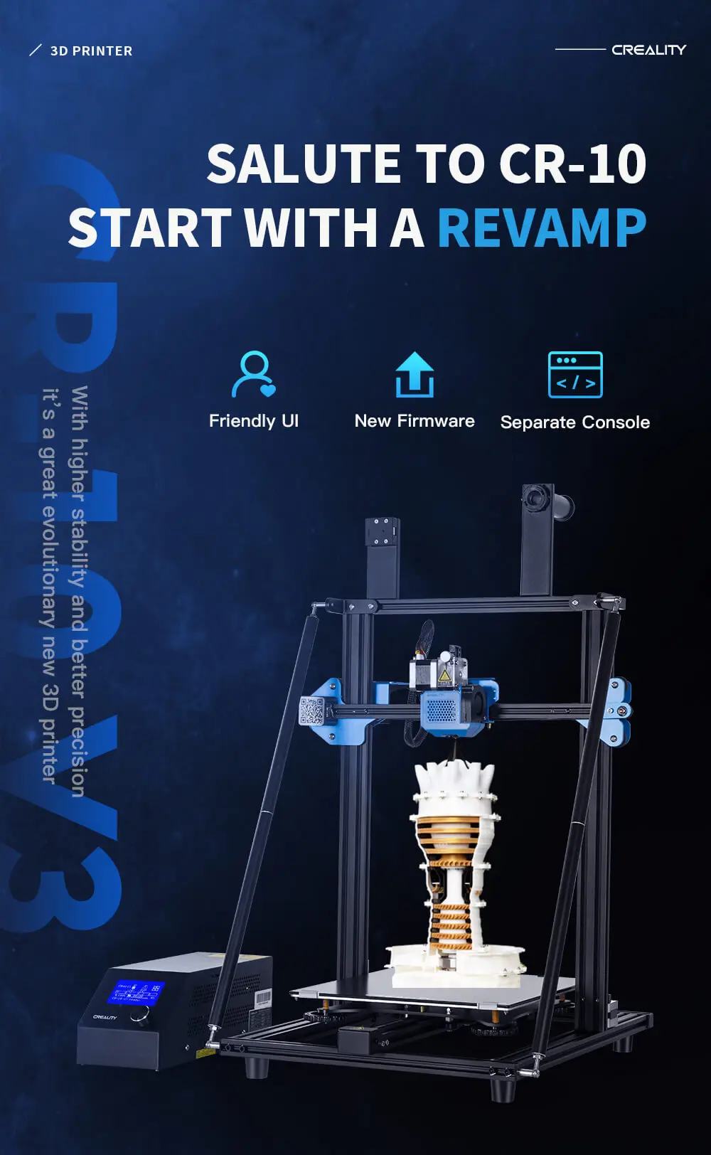 Daca doriti sa cumparati o imprimanta 3D stabila si mare, atunci Creality CR-10 V3 este dispozitivul perfect pentru dvs. Aceasta imprimanta 3D este accesibila, in ciuda caracteristicilor sale exceptionale. Numeroase inovatii ale CR-10 V3 iti imbunatatesc vizibil imprimarile 3D.