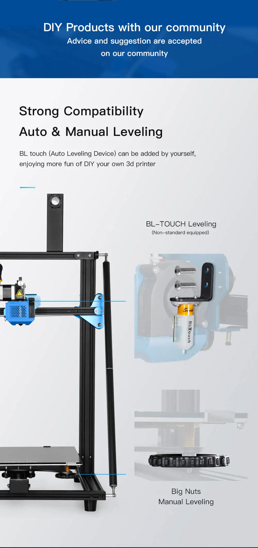 BL touch (Auto L eveling Device) can be added by yourself, enjoying more fun of DIY your own 3d printer