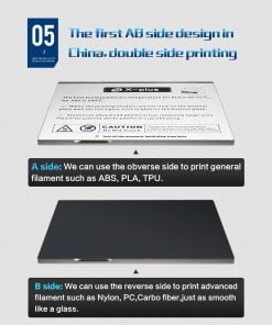 Placa de construcție integrată este o creație personalizată de Qidi Tech, astfel încât să puteți elimina cu ușurință și în siguranță rezultatul imprimării. Folosind o tehnologie magnetică special dezvoltată, placa de construcție nu este doar ușor de îndepărtat, ci și practic de reutilizat. În plus, placa de construcție Qidi Tech este acoperită pe ambele părți pentru a îndeplini cerințele necesare pentru orice material de imprimare. Partea luminoasă este perfectă pentru filamentele generale, în timp ce partea întunecată este perfectă pentru materiale speciale de imprimare.